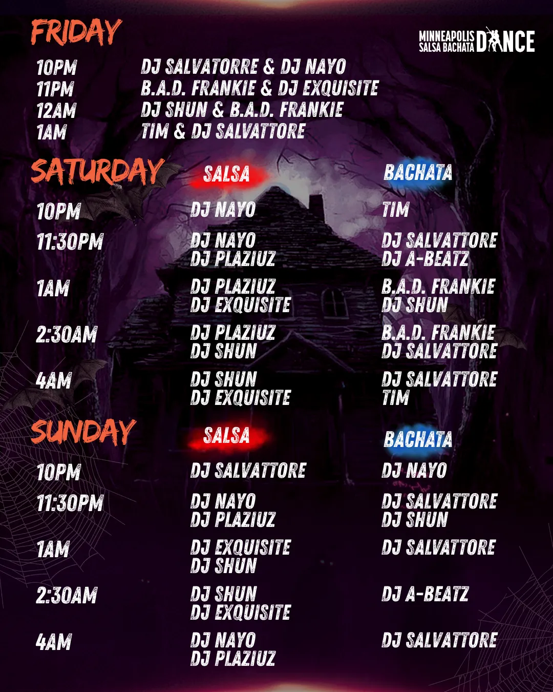 The weekender will take place from October 24-27, 2025, at the Minneapolis Salsa Bachata Dance.